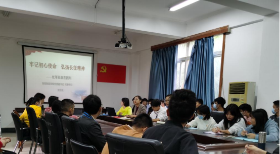 长征是中国共产党及其领导的工农红军创造的人间奇迹,是中华民族一部惊天动地的英雄史诗。习近平总书记说:“我们要继承和弘扬伟大的长征精神,有了这样的精神,就没有克服不了的困难,我们完全有信心有决心有恒心实现中华民族伟大复兴的中国梦。”2021年10月21日中午12:30,攀枝花学院智能制造学院学生第一党支部在会议室306开展了“牢记初心使命 弘扬长征精神”——红军长征在四川的党课学习,党委副书记、纪委书记简宇苑带领全体党员同志感受长征的艰辛。