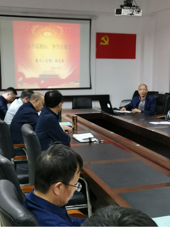 2021年10月27日下午17:30,智能制造学院教工第一党支部在励志楼306开展了“矢志不忘初心,争当合格党员”专题党课。本次党课由智能制造学院教工第一党支部书记杨光春同志担任主讲人,智能制造学院党委书记薛荐戈、智能制造学院副院长周振、教工第一党支部全体教师党员参加了党课学习。