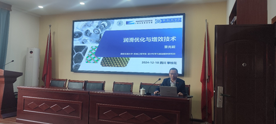 下午,董光能教授以《润滑优化与增效技术》为题同样作了精彩的学术报告。报告中主要从以下几个方面阐述了润滑增效的研究进展和现状:(1)问题的提出——高速打滑、低速重载;(2)表面织构的历史及发展;(3)织构设计与制造;(4)表面织构引导;(5)织构的应用。