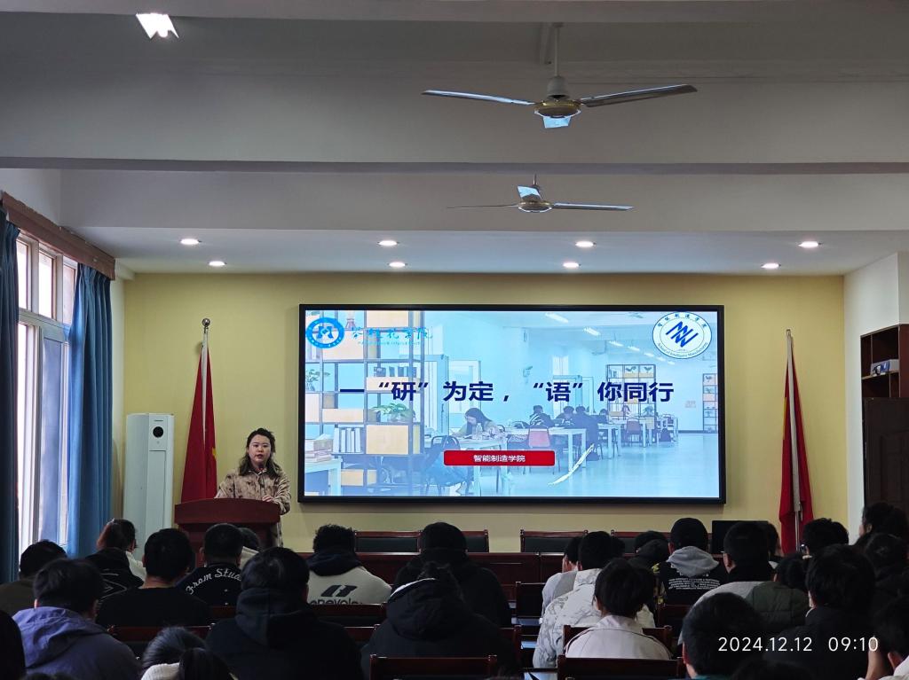 为帮助我院同学更好地备战考研,我院于1212日在砺志楼201室举办了主题为一“研”为定,“语”你同行的考研动员大会。参加本次会议的有党委副书记简宇苑老师、分团委书记马潇然老师、杨艳老师、周攀老师以及考研同学。