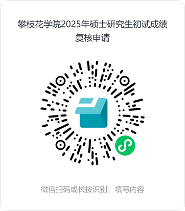 微信扫描下方二维码,如实填写“攀枝花学院2025年硕士研究生初试成绩复核申请”,仔细阅读填写说明,并按要求完整填报成绩复核申请表单。(请勿多次重复提交)