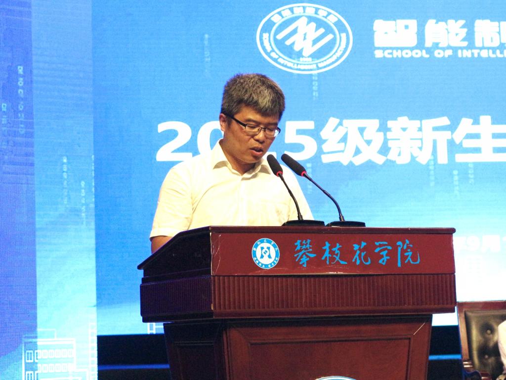 副院长魏弦(主持工作)首先致辞,代表学院向2025级全体新生表示热烈欢迎,并介绍了学院的发展历程、学科优势与科研成果。他鼓励同学们珍惜青春、勇于探索,在智能制造的广阔天地中放飞梦想。