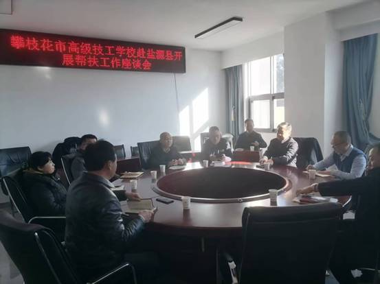 12月4日,副校长、结对帮扶工作领导小组组长王兵率市高级技工学校、党政办、工会、附属医院及艺术学院相关负责人赴盐源县,就贯彻落实“一对一”结对帮扶工作与盐源县相关部门开展深度对接座谈。盐源县人社局党组书记、局长黎佳瑜,党委副书记、就业创业中心主任李兵玛,盐源县人民医院党委书记陈宏出席会议。