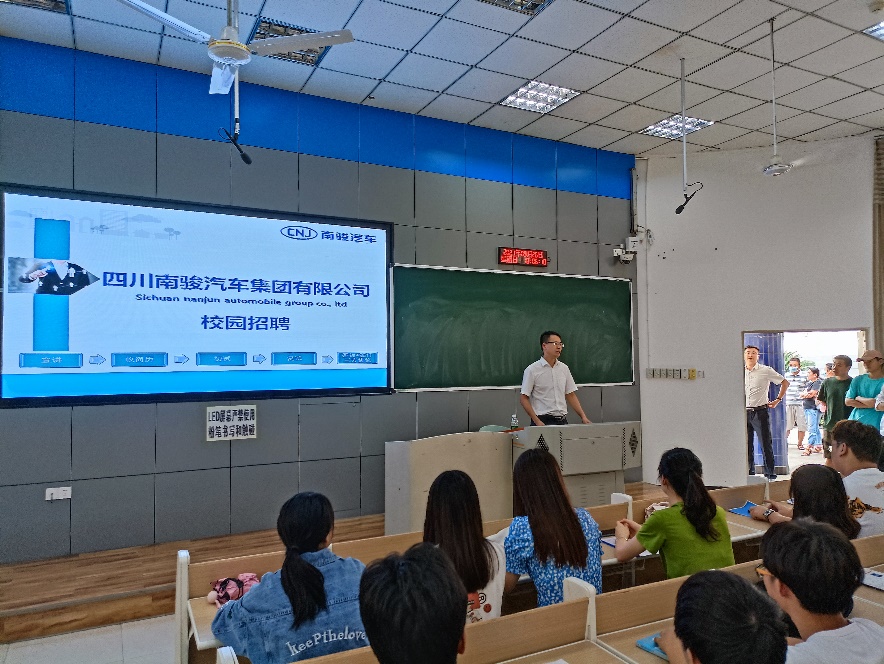 南骏汽车集团人力资源负责人通过播放企业宣传片、讲解PPT展示企业简介、发展历程、基本战略、公司荣誉、企业文化、人才需求以及薪资待遇等。据了解本次招聘会涉及专业广,主要涉及车辆工程、汽车服务工程、机械设计制造及其自动化等专业。企业负责人讲解完成后,同学们也积极提出自己关心的问题,招聘方予以明确答复并为在场学生提出实用性建议。会后,我院100多名同学投出了自己的简历。