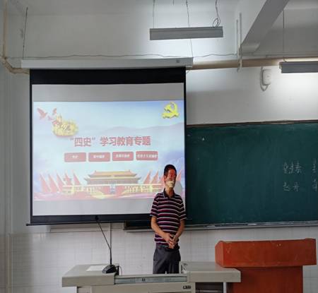 2021年5月30日上午9:00,学生第二党支部书记吴继忠在笃行楼306讲授“四史”学习教育专题党课,支部全体党员参加了本次学习。